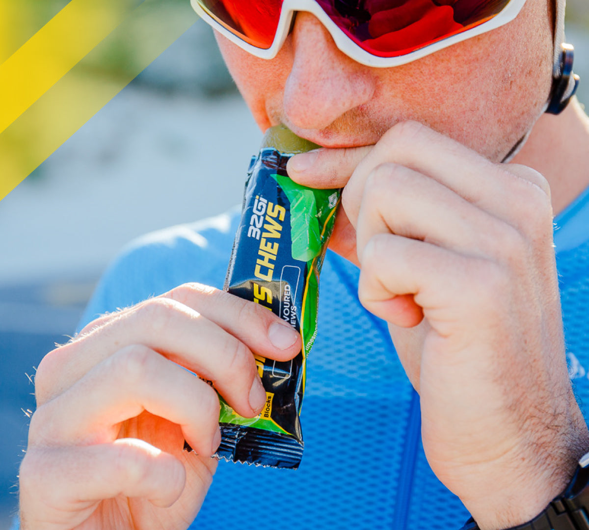 OR sickly & chewy sweets that constantly melt in the hot weather, get stuck in your teeth, or block your airways? 32Gi® Sports Chews are designed for easy swallowing, hot or cold weather, and are not too sweet with their subtle natural & delicious flavours.