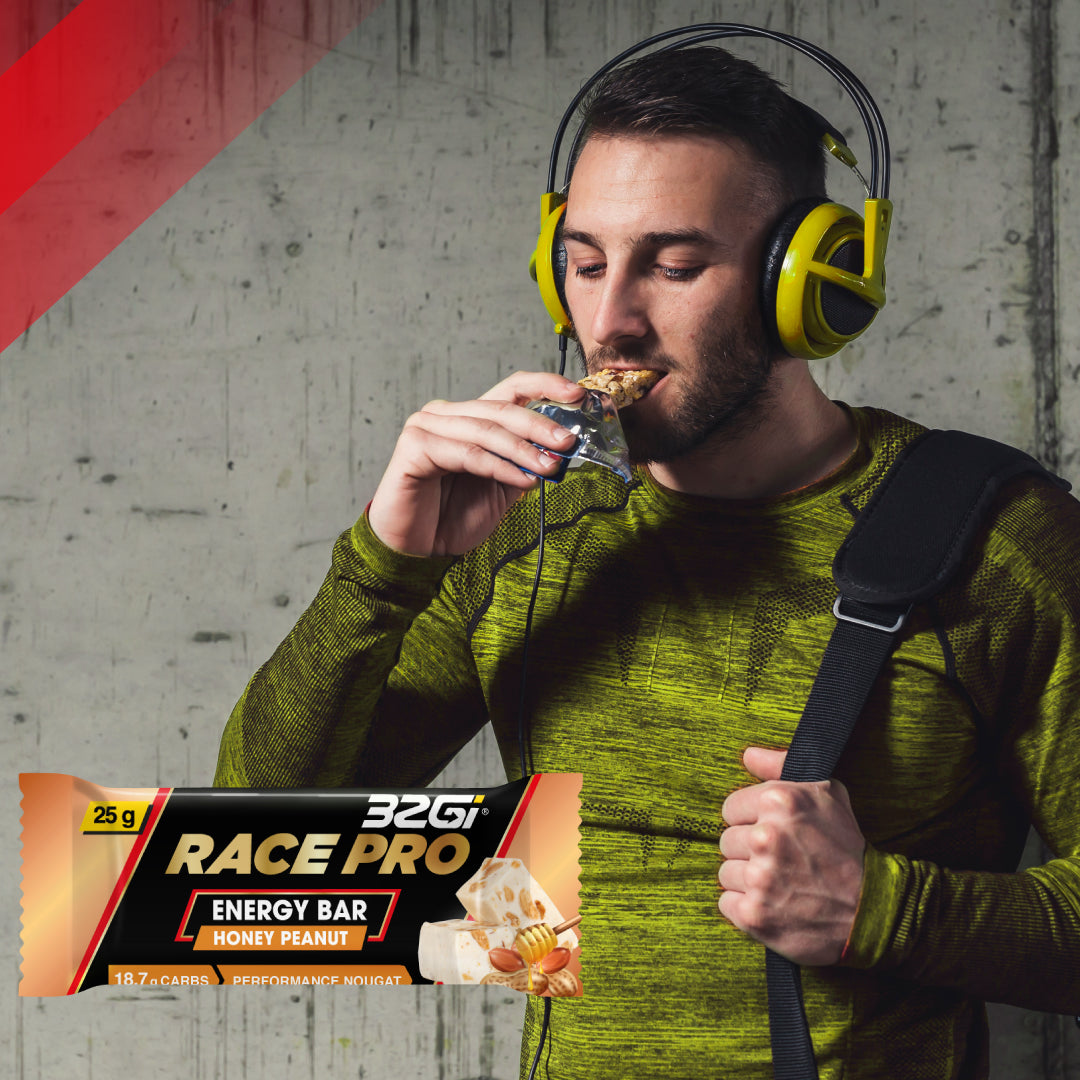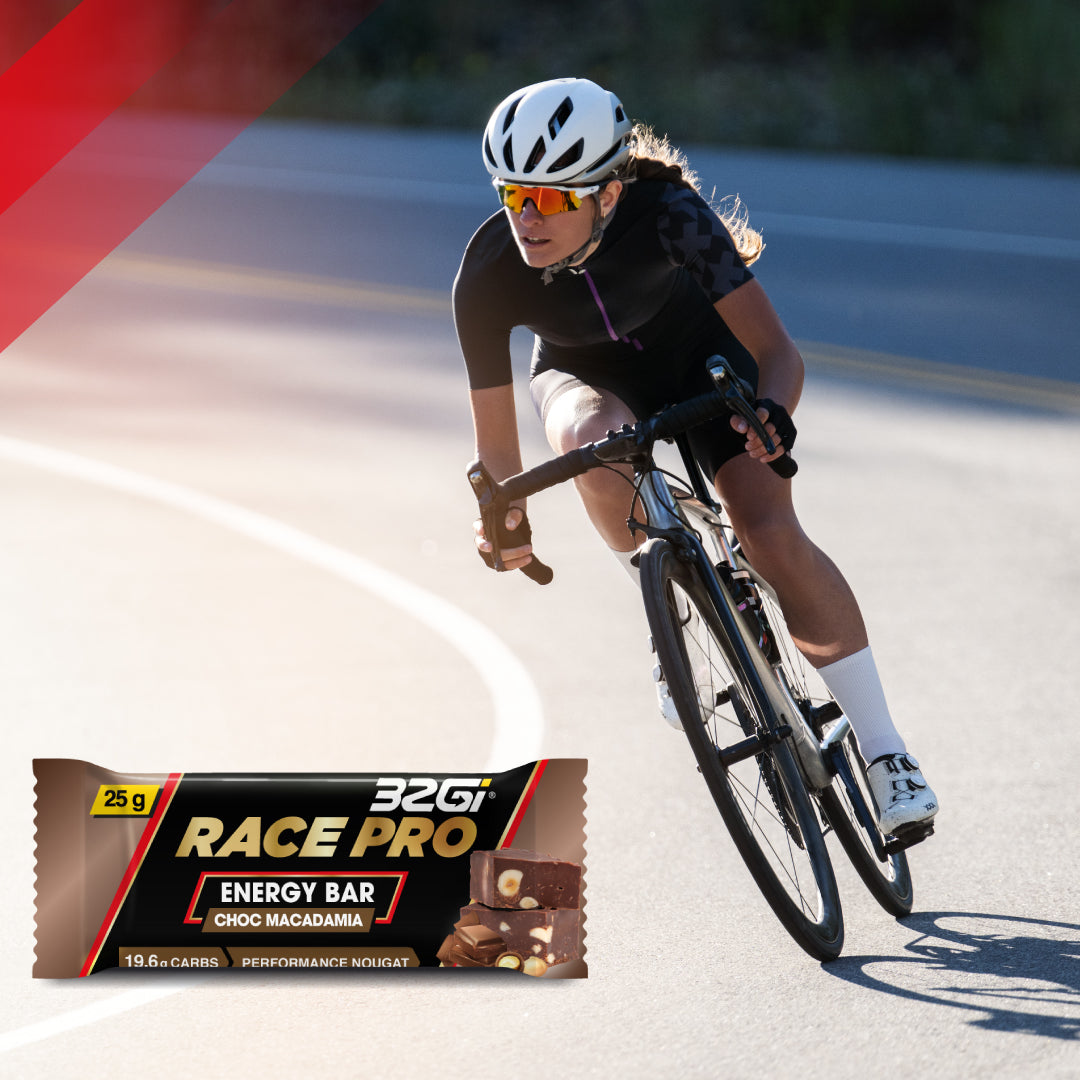 Satisfy your training and racing energy needs with the deliciously crafted 32Gi® Race Pro Performance Nougat Energy Bar, offering sustainable energy in gourmet flavours.