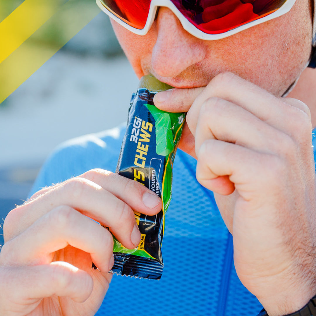 - REPLACE YOUR GELS - Easy to eat, will not get stuck in your teeth or block your airways. 32Gi® Sports Chews are the perfect companion for the run, bike, or anywhere on the go.